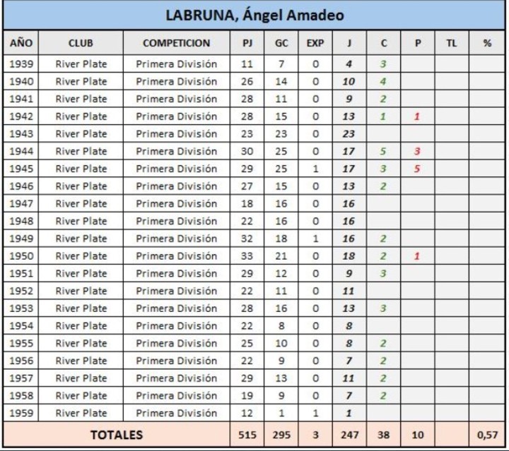 El trabajo de revisión detectó que a Labruna, en las estadísticas reconocidas hasta ahora, no se le habían contabilizado que «había anotado 2 goles en los partidos desempate del 2° puesto de 1949, frente a Platense”. En consecuencia, Erico quedaba arriba 293 a 292.
